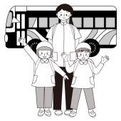 かわいい!バスに乗って 遠足 (えんそく)♪ 先生と子供のイラスト